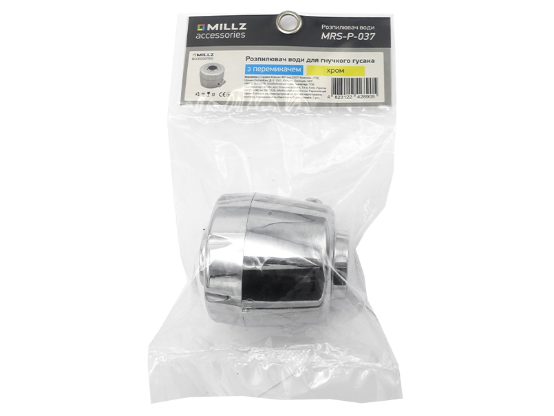 Розпилювач води для гнучкого гусака MRS-P-037 від бренду MILLZ — це зручний і функціональний аксесуар для кухні. Він в хромовому кольорі і виготовлений з міцного пластику, що забезпечує довговічність у використанні. В розпилювач вмонтований аератор, який допомагає економити воду, роблячи потік рівномірним і м'яким. Оснащений зручним перемикачем, що дозволяє легко змінювати режими подачі води відповідно до потреб. Монтується безпосередньо в гнучкий гусак, забезпечуючи простоту встановлення. Упакований у прозорий поліетилен з отвором для підвісу на вітрину та штрих-кодом для зручності обліку. Гарантія на товар становить 6 місяців, що підтверджує його якість і надійність.