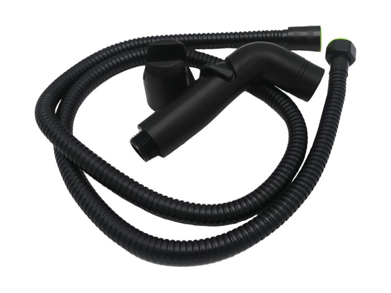 Гігієнічний набір MILLZ MRS-P-039 — це практичне рішення для підтримки чистоти та гігієни. Виготовлений із металу з чорним покриттям, набір виглядає стильно та відзначається довговічністю. Гігієнічна лійка Г-подібної форми комфортно лежить у руці, перемикач на гігієнічній лійці дозволяє легко керувати потоком води. Вкручується в гнучкий шланг довжиною 114 мм, що забезпечує зручність використання, та вішається на тримач, який монтується на стіну. Різьба 1/2". Простий монтаж і комфортна експлуатація роблять цей набір відмінним вибором для підтримки гігієни. У комплект входить: лійка довжиною - 18 см, гнучкий шланг - 115 см, тримач для лійки, 2 саморізи, 2 дюбелі. Упакований в картонну коробку з отвором для підвісу на вітрину зі штрих-кодом, а сама лійка у білий нетканий матеріал для запобігання подряпинам. Гарантія 1 рік.