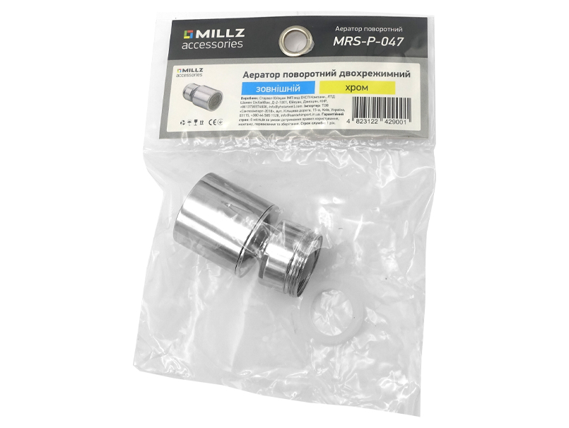Аератор поворотний двохрежимний MILLZ MRS-P-047 – це зручний та функціональний аксесуар для вашого змішувача, який допоможе вам оптимізувати використання води. Виготовлений з міцного металу з хромованим покриттям, він поєднує в собі стильний зовнішній вигляд та довговічність. Цей аератор дозволяє легко перемикати режими подачі води, забезпечуючи зручність при використанні. Завдяки поворотному механізму, ви можете легко змінювати напрямок струменя води, що особливо корисно при митті посуду або раковини. Має зовнішню різьбу, що забезпечує просте та надійне кріплення. У комплекті ви знайдете сам аератор, упакований у прозорий поліетилен з отвором для підвісу на вітрину зі штрих-кодом. На товар діє гарантія 6 місяців.