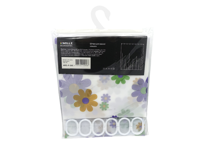 Штори для ванної кімнати MILLZ MRS-P-065 – це чудове поєднання функціональності та кольору. Виготовлені з водонепроникного поліетилену, вони безпечні для людей і тварин, приємні на дотик і практичні у використанні. Білий фон штор прикрашений різнокольоровими квітами, що додасть свіжості та настрою. Полотно напівпрозоре, краї акуратно підгорнуті, що робить штори більш охайними та міцними. Фіранки легко кріпляться на спеціальну трубу, а отвори для кілець пробиті, що додає зручності у встановленні. Завдяки розміру 180х180 см вони чудово підходять для більшості ванних кімнат. У комплекті є 12 пластикових кілець, тож усе необхідне вже під рукою. Упаковані у прозорий поліетилен з гачком та штрих-кодом. І, що важливо, на них діє гарантія 1 рік. Для зручності догляду за завісами використовувати м'яку губку або тканину, змочену в теплій воді з м'яким миючим засобом. Уникайте агресивних хімічних засобів, таких як відбілювачі або засоби, що містять абразиви, оскільки вони можуть пошкодити поліетиленову тканину та зіпсувати її вигляд. Просто протирайте фіранки з обох боків, а потім дайте їм висохнути на повітрі.