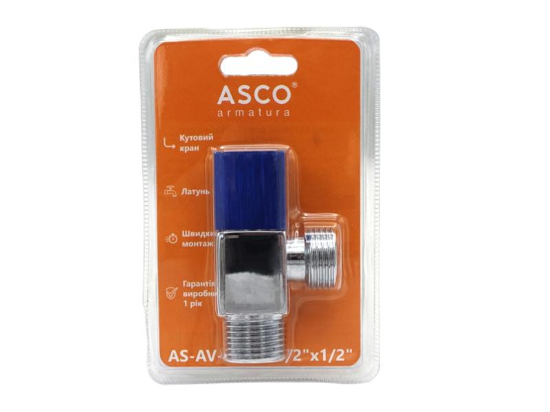 Кран кутовий для сантехприладів ASCO 1/2" х 1/2" хром AS-AV-005