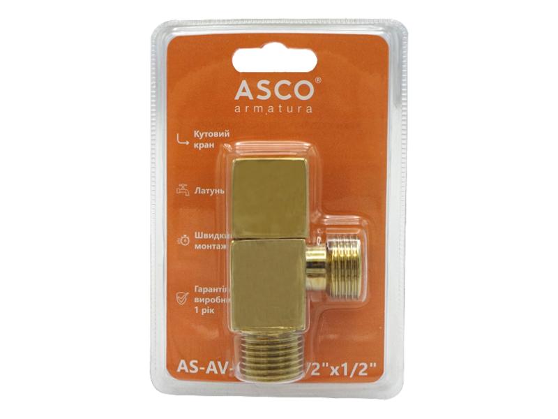 Кран кутовий для сантехприладів ASCO 1/2" х 1/2" Gold AS-AV-007