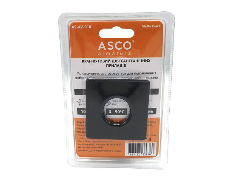 Кран кутовий для сантехприладів ASCO 1/2"х3/4" Matte Black AS-AV-010