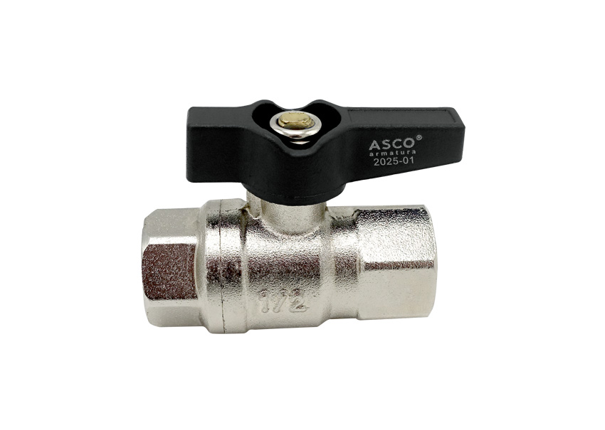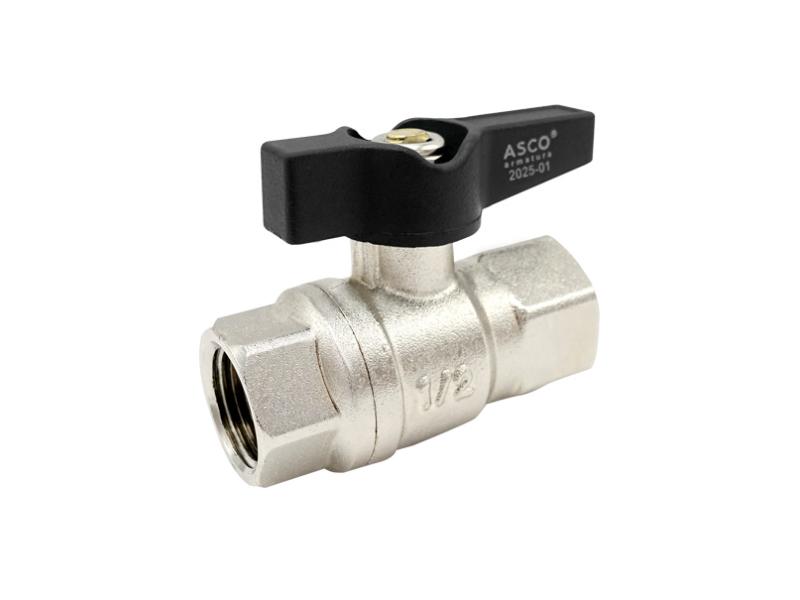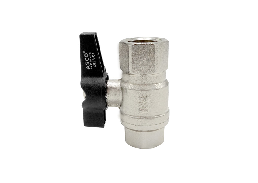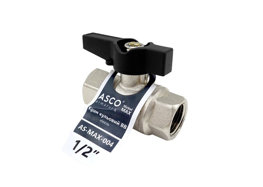 Кульовий кран від ASCO Nickel PRO з повнопрохідним каналом і двосторонньою внутрішньою різьбою (1/2") призначений для внутрішніх систем водопостачання та опалення. Корпус виготовлений із міцної сталі та покритий нікелем, що захищає його від корозії. Повнопрохідний канал крана забезпечує безперешкодний потік води та не допускає появи засорів. Розташований в ньому затворний шар із нікельованої сталі забезпечує високу герметичність при перекритті води. Важіль-метелик із високоякісного пластику сірого кольору забезпечує швидке відкриття/закриття води. Важіль закріплений гайкою, що запобігає його розхитуванню з часом. Кран витримує тиск до 40 бар та вплив температури від –30 °C до +150 °C. Монтується горизонтально та вертикально. Гарантійний термін — 7 років. Країна-виробник — Китай.