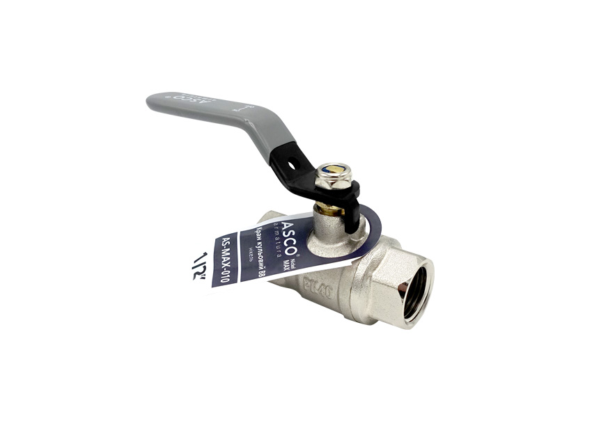 Кран кульовий Nickel MAX PN40 1/2" ВВ сіра ручка ASCO 1/20