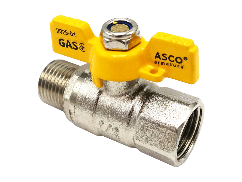 Кульовий кран від ASCO Nickel PRO призначений для внутрішніх газових систем та відрізняється високою надійністю та ефективністю. Корпус виробу виготовлений із нікельованої сталі марки А105, що забезпечує стійкість до механічних навантажень та захист від корозії. Кран оснащений комбінованою, внутрішньою і зовнішньою, різьбою (1/2") і повнопрохідним каналом, який забезпечує вільний потік газу. Жовтий пластиковий важіль-метелик з кутом повороту 90° дозволяє швидко і безпечно перекривати подачу газу. Він надійно зафіксований гайкою, що унеможливлює його розхитування в процесі експлуатації. Кран розрахований на робочий тиск до 20 бар та температурний режим від –15 °C до +60 °C. Ресурс експлуатації не менше 25 000 робочих циклів, при напрацюванні на відмову до 50 000 циклів. Встановлення можливе як у горизонтальному, так і у вертикальному положенні. Гарантія — 7 років. Країна-виробник — Китай.