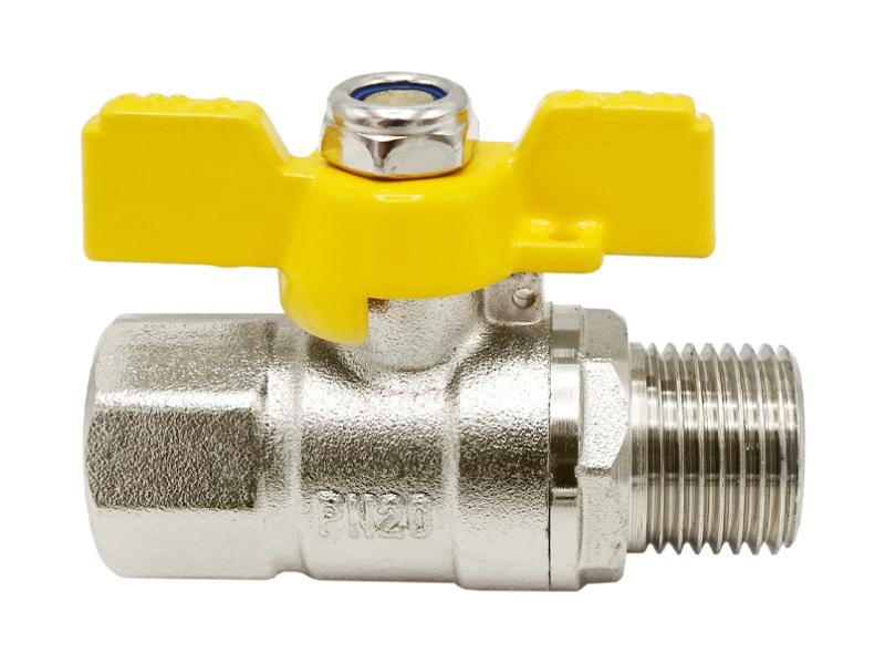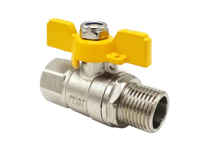 Кран кульовий нікель для газу Nickel PRO 1/2" ЗВ PN20 жовтий метелик ASCO 1/26