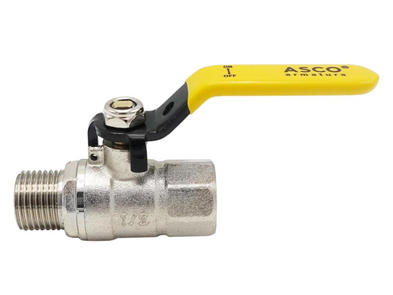 Кульовий кран від ASCO Nickel PRO для внутрішніх систем газопостачання відрізняється надійністю та функціональністю. Виконаний з нікельованої сталі, що забезпечує міцність та захист від корозії. Кран має комбіновану, внутрішню і зовнішню, різьбу (1/2") і повнопрохідний канал, який не допускає появи засорів. Жовтий пластмасовий важіль-прапорець завдяки зручному куту повороту 90° гарантує швидке і надійне перекриття газу. Важіль-прапорець надійно закріплений гайкою, що не допускає його розхитування з часом. Кран витримує тиск до 20 бар та температуру від –15 °C до +60 °C. Це гарантує тривалий термін використання, мінімум до 25 000 циклів (напрацювання на відмову — 50 000 циклів). Монтується горизонтально та вертикально. Гарантія — 7 років. Країна-виробник — Китай.