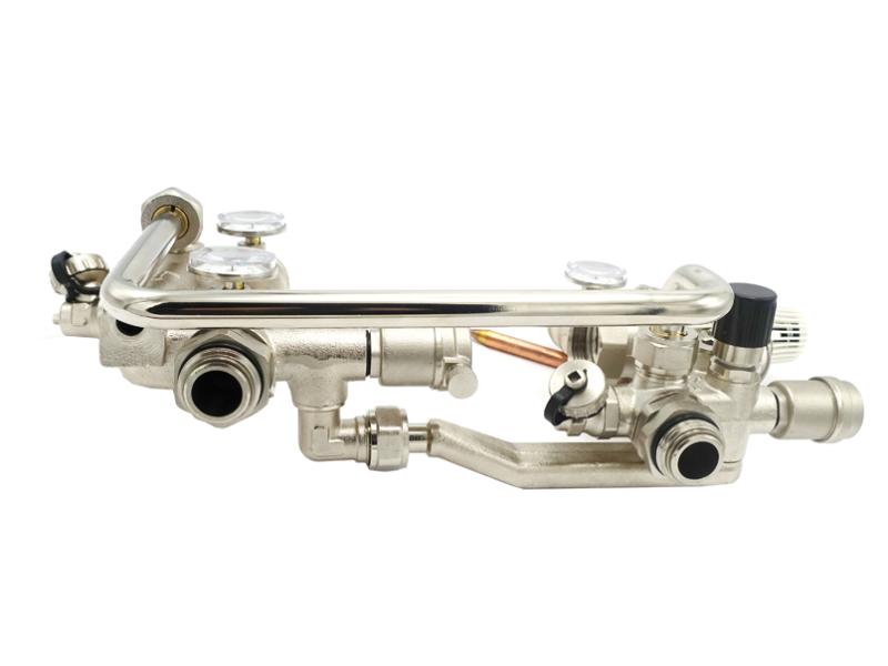 Змішувальний вузол з байпасом V&G призначений для підтримки стабільної температури в системі «тепла підлога» шляхом змішування гарячої та охолодженої води. Особливістю конструкції є наявність байпаса. Він забезпечує постійну циркуляцію теплоносія навіть при закритих контурах, що запобігає перегріву насоса та підвищує надійність роботи системи. Корпус вузла виготовлений з нікельованої латуні, яка не схильна до корозії, та оснащений виходами 1" для підключення. Вузол упакований у фірмову картонну коробку з ложементом, який не допускає деформації під час транспортування. У комплект входять кріплення. Коробка має штрихкод та розміри 43 х 25,5 х 14,5 см. Виробництво: Китай.