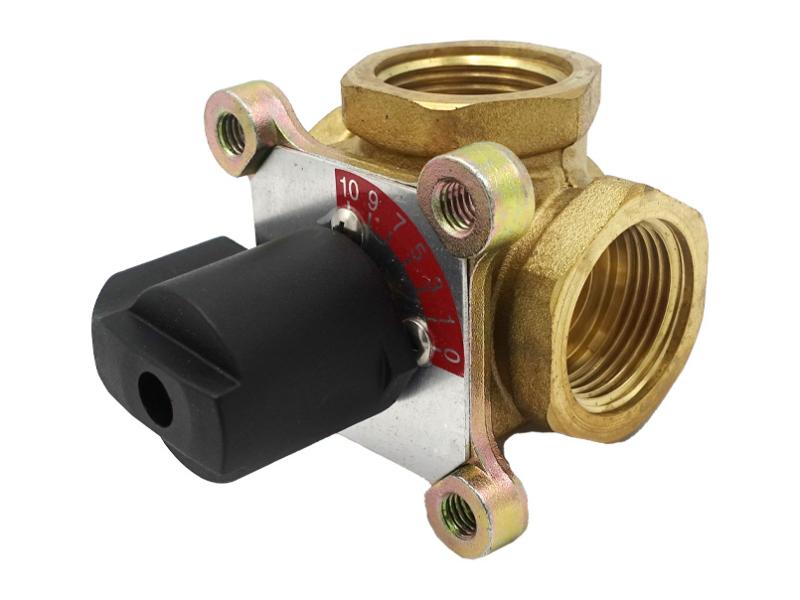 Ручний триходовий змішувальний клапан 1" V&G призначений для поділу чи змішування водних потоків у системах опалення чи водопостачання. Використовують під час монтажу радіаторів, систем «тепла підлога», змішувальних вузлів тощо. Регулювання здійснюється вручну. Для цього на корпусі клапана нанесено шкалу від 0 до 10. «0» позначає подачу холодної води, «10» подачу гарячої води, інші цифри вказують на змішування потоків у відповідному співвідношенні (30/70, 50/50 тощо). Корпус клапана виготовлений із латуні та має для підключення різьбові виходи 1" В. Поворотний клапан забезпечує плавний хід регулювання. Клапан запакований у фірмову картонну коробку, яка має штрихкод і розмір 8 х 8 х 10 см. Виробництво: Китай.