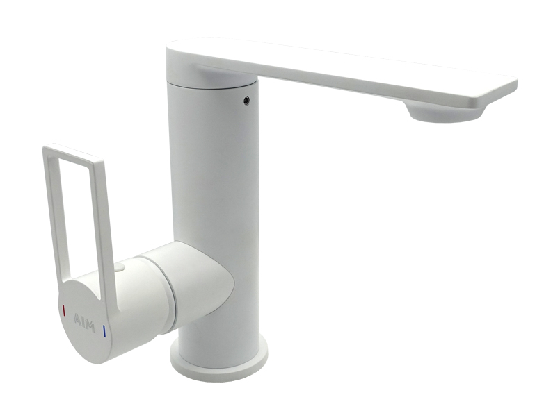 Змішувач для раковини AIM поєднує сучасний дизайн та практичність. Виготовлений із латуні, що підвищує термін його використання, та має антикорозійне матове покриття білого кольору. Корпус висотою 15,5 см та має ущільнювальну прокладку для недопущення протікань. На корпусі розташований бічний важіль з керамічним картриджем. Він плавно регулює напір і температуру струменя. Важіль має зручну форму з прорізом для захоплення та колірні маркери підведення води, що дозволяє комфортно керувати ним. Поворотний гусак довжиною 16,5 см дозволяє спрямовувати струмінь у будь-яку частину раковини. Вмонтований у носик аератор не допускає розбризкування. Змішувач кріпиться на гайку і не потребує складного догляду. Постачається в міцній картонній коробці зі штрихкодом. В комплект входять: змішувач для раковини, гайка з кріпленнями, 2 гнучкі шланги для води, трикотажні рукавички, інструкція, гарантійний талон. Розмір пакування 262х220х75 мм. Гарантія — 5 років. Виробництво — Китай.