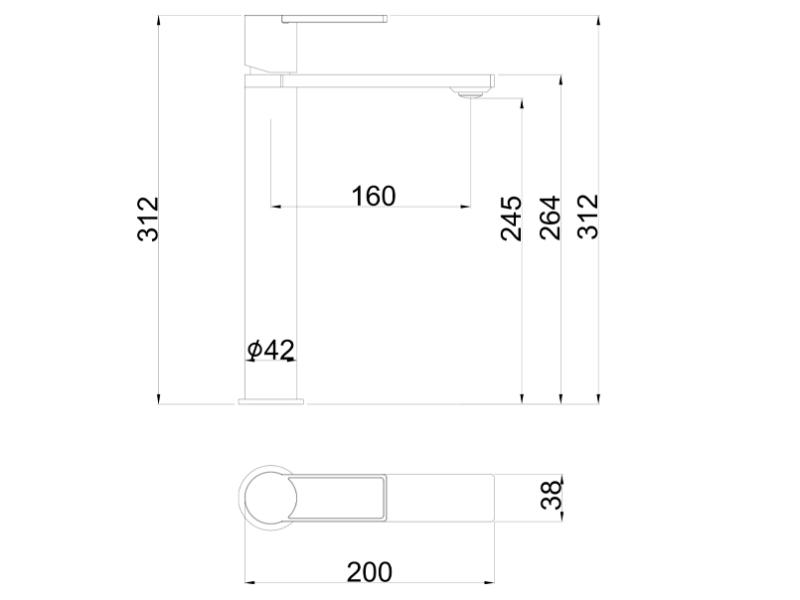 Змішувач для раковини подовжений корп, латунь ,хром AIM,DG06511-1 chrome