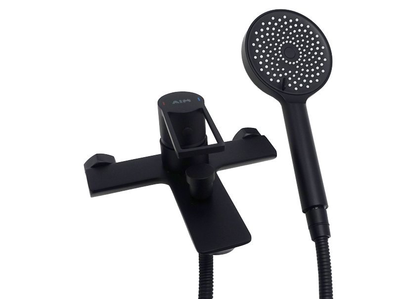 Елегантний та компактний змішувач для ванни AIM — ідеальне рішення для невеликих ванних кімнат. Виготовлений із міцної латуні та має чорне матове покриття, яке стійке до корозії. Корпус довжиною 18 см має короткий литий гусак (10 см). У його носик вмонтований аератор, він не допускає розбризкування води та проходження домішок. Верхній важіль з керамічним картриджем забезпечує плавне регулювання напору та температури води. Важіль прямокутної форми має зручний проріз для захоплення, що дозволяє керувати ним навіть одним пальцем. На виливі розташований круглий перемикач режимів з ванни на душ. Чорний гофрований шланг для душа довжиною 1,5 м оснащений сполучними гайками для підключення змішувача та душової лійки. Багаторежимна душова лійка довжиною 24 см і діаметром 10,5 см забезпечує різні варіанти подачі води, перемикнути на які можна за допомогою поворотного диска. Для зручного користування лійка кріпиться на настінний утримувач. Змішувач монтується на стіну і не потребує особливого догляду. Постачається в міцній картонній коробці зі штрихкодом. В комплект входять: змішувач для душової кабіни, душова лійка, шланг, тримач, 2 накладні чаші з ексцентриками та прокладками, інструкція, гарантійний талон, трикотажні рукавички. Розмір пакування 400х230х125 мм. Гарантія: 5 років. Виробництво: Китай.