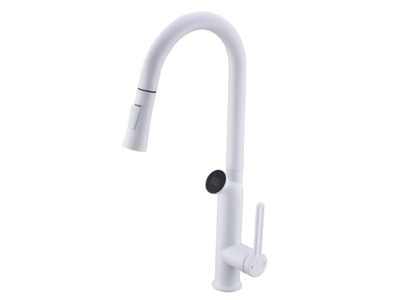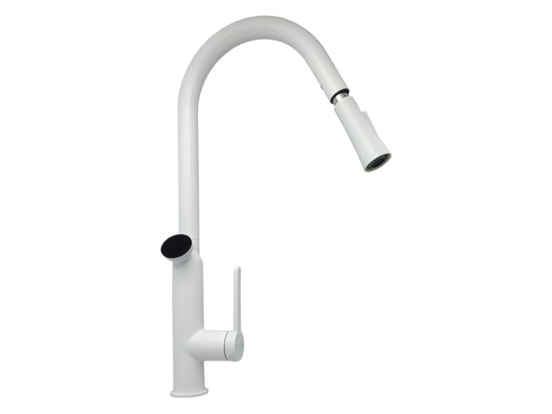 Змішувач для мийки витяжн.лійка, латунь,білий AIM, DG16057- frosted white