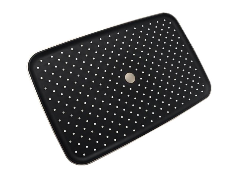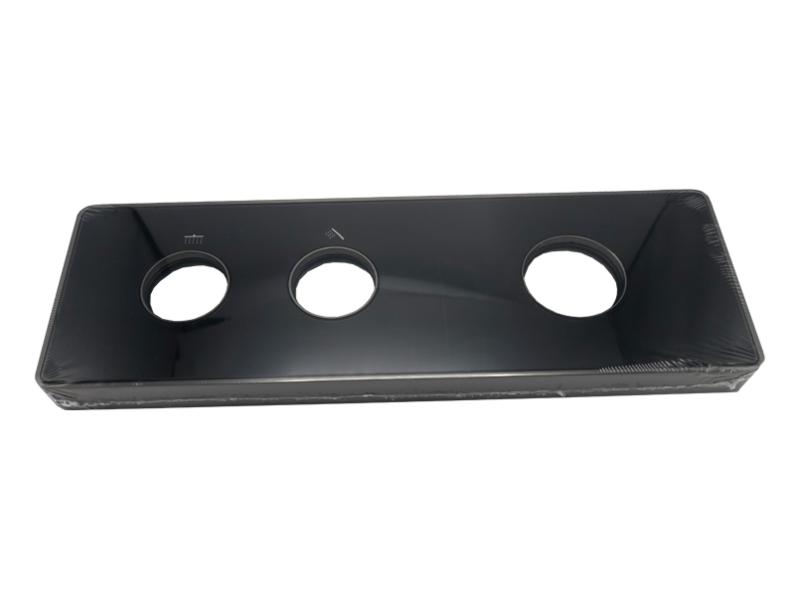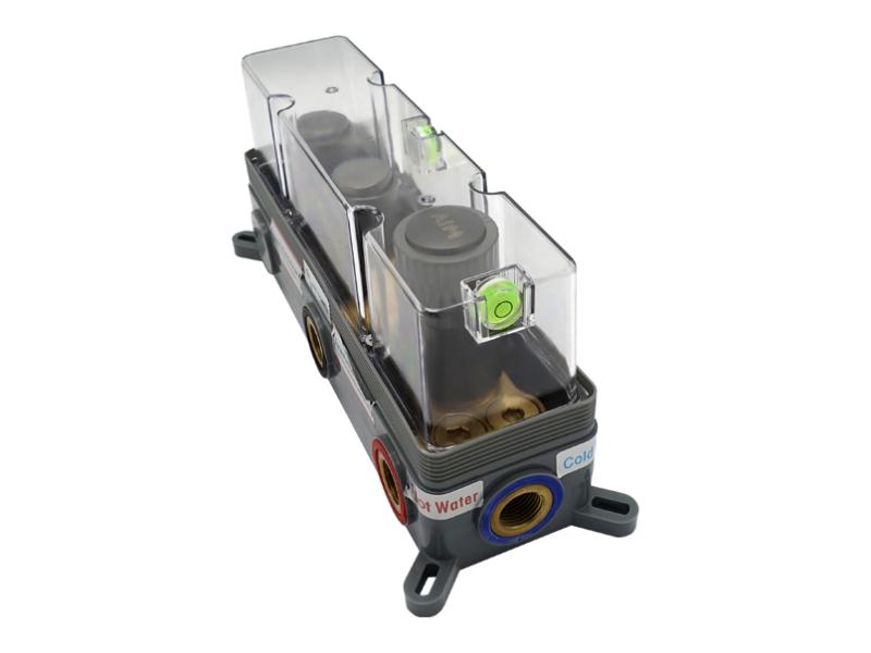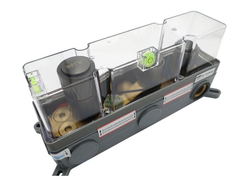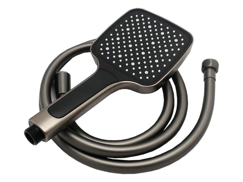 Комплект для душової кабіни прихованого монтажу AIM виготовлений із міцної латуні та має матове темно-сіре покриття, що надійно захищає від корозії та пошкоджень. Комплект складається з трьох частин: змішувача з керамічним картриджем, ручної душової лійки та верхнього душу. Змішувач монтується в стіну, а зовні залишається декоративна панель із трьома поворотно-кнопковими перемикачами: один регулює натиск та температуру води, два інші призначені для включення душової лійки та верхнього душу. Ручна лійка (113х110 мм) підключається до змішувача довгим шлангом, що забезпечує свободу руху під час приймання душу. По закінченні процедури лійку можна встановити на настінний тримач. Верхній душ прямокутної форми створює м'який потік, що розсіюється і рівномірно омиває все тіло. Система прихованого монтажу зменшує шум води, що ллється, і не вимагає особливого догляду. Постачається у фірмовій картонній коробці (382 х478х167 мм) зі штрихкодом. В комплект входять: змішувач, ручна душова лійка, верхній душ, декоративна панель, перемикачі, кріплення, трикотажні рукавички, інструкція, гарантійний талон. Гарантія — 5 років. Виробництво — Китай.