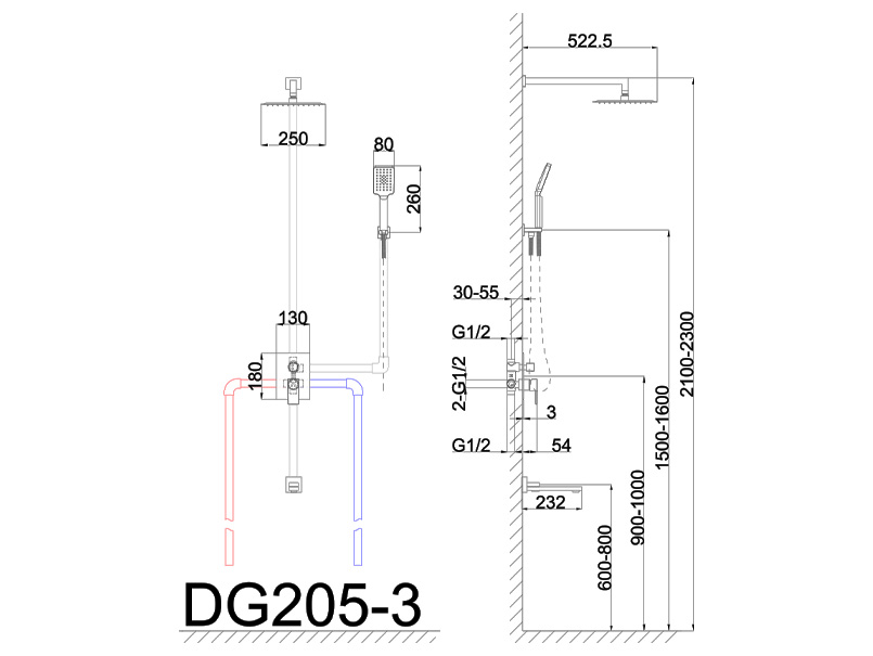 Комплект для душ кабіни (вмонтов.в стіну),графітовий AIM,DG 205-3 gun grey