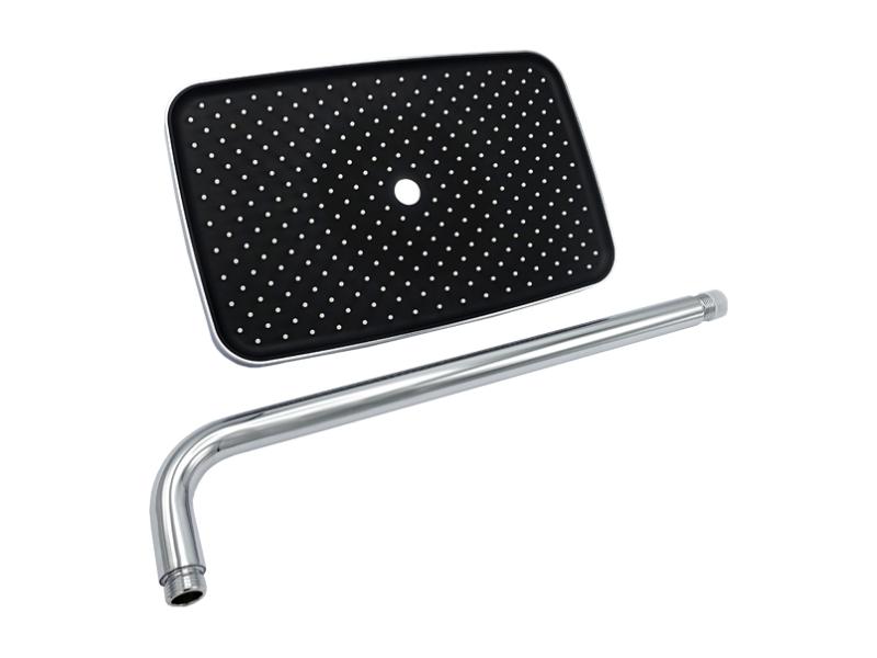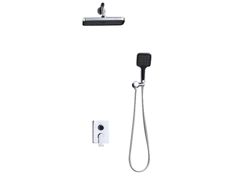 Комплект для душової кабіни AIM призначений для прихованого монтажу, що дозволяє заощадити місце у ванній та продовжити термін служби системи. Виготовлений із латуні та покритий антикорозійним хромом, який надає поверхням дзеркального блиску. В комплект входять: змішувач з керамічним картриджем і кнопковим перемикачем режимів, душова лійка, настінний душ, кріплення. Змішувач монтується в стіну. На поверхні залишається декоративна панель з важелем-прапорцем для плавного та точного регулювання напору та температури води, а також кнопковий перемикач душу з ручного на верхній. Душова ручна лійка (11,3х11 см) з'єднується зі змішувачем довгим шлангом, що забезпечує свободу рухів під час приймання процедури. Настінна лійка прямокутної форми (30,8х19,5 см) створює м'який потік струменів для комфортного миття всього тіла. Система прихованого монтажу приглушує звук води та захищає внутрішні елементи від випадкового пошкодження. Не вимагає особливого догляду, достатньо протирати поверхні вологою ганчірочкою. Постачається у фірмовій картонній коробці (382х478х167 мм) зі штрихкодом. В комплект входять: змішувач, душова лійка зі шлангом і тримачем, лійка, трикотажні рукавички, інструкція, гарантійний талон. Гарантія: 5 років. Виробництво: Китай.