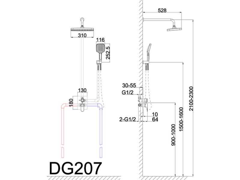 Комплект для душ кабіни (вмонтов.в стіну),,хром AIM,DG207 chrome