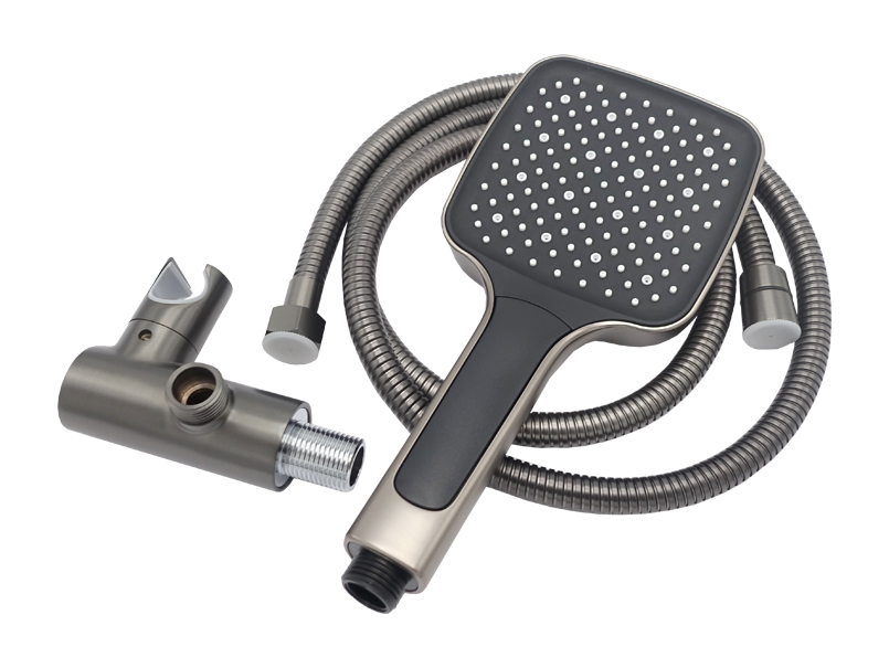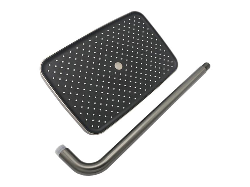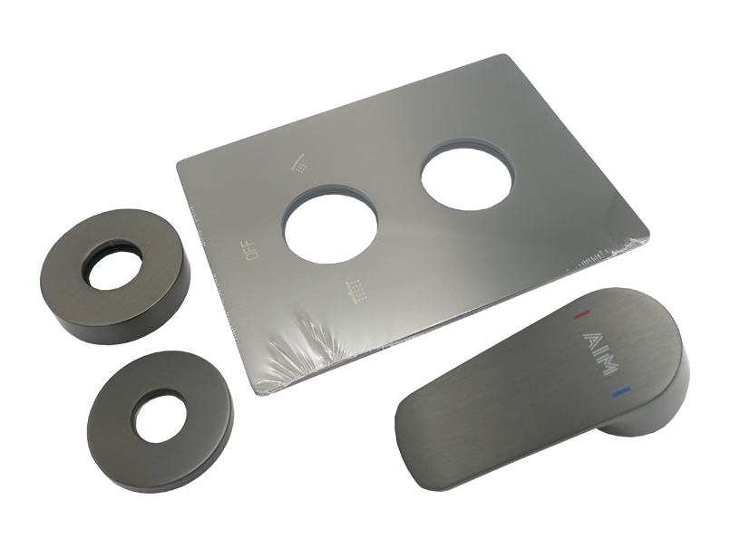 Комплект для душової кабіни AIM призначений для прихованого монтажу, що дозволяє заощадити місце у ванній та продовжити термін служби системи. Виготовлений із міцної латуні та має темно-сіре матове покриття, яке захищає від коррозії та подряпин. В комплект входять: змішувач з керамічним картриджем і кнопковим перемикачем режимів, душова лійка, настінний душ, кріплення. Змішувач монтується в стіну. На поверхні залишається декоративна панель з важелем-прапорцем для плавного та точного регулювання напору та температури води, а також кнопковий перемикач душу з ручного на верхній. Душова ручна лійка (11,3х11 см) з'єднується зі змішувачем довгим шлангом, що забезпечує свободу рухів під час приймання процедури. Настінна лійка прямокутної форми (30,8х19,5 см) створює м'який потік струменів для комфортного миття всього тіла. Система прихованого монтажу приглушує звук води та захищає внутрішні елементи від випадкового пошкодження. Не вимагає особливого догляду, достатньо протирати поверхні вологою ганчірочкою. Постачається у фірмовій картонній коробці (382х478х167 мм) зі штрихкодом. В комплект входять: змішувач, душова лійка зі шлангом і тримачем, лійка, трикотажні рукавички, інструкція, гарантійний талон. Гарантія: 5 років. Виробництво: Китай.