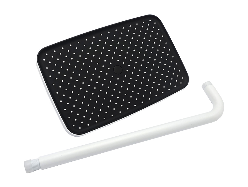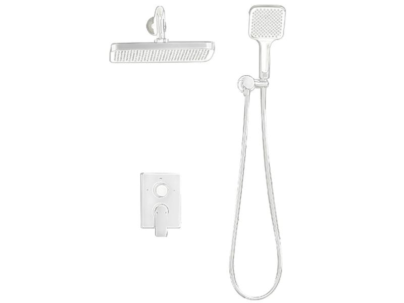 Комплект для душової кабіни AIM призначений для прихованого монтажу, що дозволяє заощадити місце у ванній та продовжити термін служби системи. Виготовлений із міцної латуні та має біле матове покриття, яке захищає від коррозії та подряпин. В комплект входять: змішувач з керамічним картриджем і кнопковим перемикачем режимів, душова лійка, настінний душ, кріплення. Змішувач монтується в стіну. На поверхні залишається декоративна панель з важелем-прапорцем для плавного та точного регулювання напору та температури води, а також кнопковий перемикач душу з ручного на верхній. Душова ручна лійка (11,3х11 см) з'єднується зі змішувачем довгим шлангом, що забезпечує свободу рухів під час приймання процедури. Настінна лійка прямокутної форми (30,8х19,5 см) створює м'який потік струменів для комфортного миття всього тіла. Система прихованого монтажу приглушує звук води та захищає внутрішні елементи від випадкового пошкодження. Не вимагає особливого догляду, достатньо протирати поверхні вологою ганчірочкою. Постачається у фірмовій картонній коробці (382х478х167 мм) зі штрихкодом. В комплект входять: змішувач, душова лійка зі шлангом і тримачем, лійка, трикотажні рукавички, інструкція, гарантійний талон. Гарантія: 5 років. Виробництво: Китай.