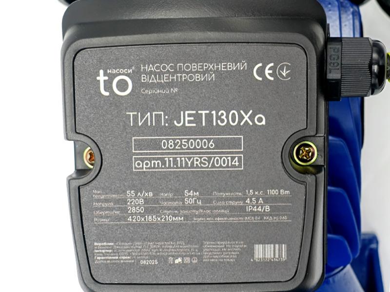 JET130Ха Насос відцентровий чавун кор.корпус 1.1 кВт Qmax 55л/хв, H54m toНасоси
