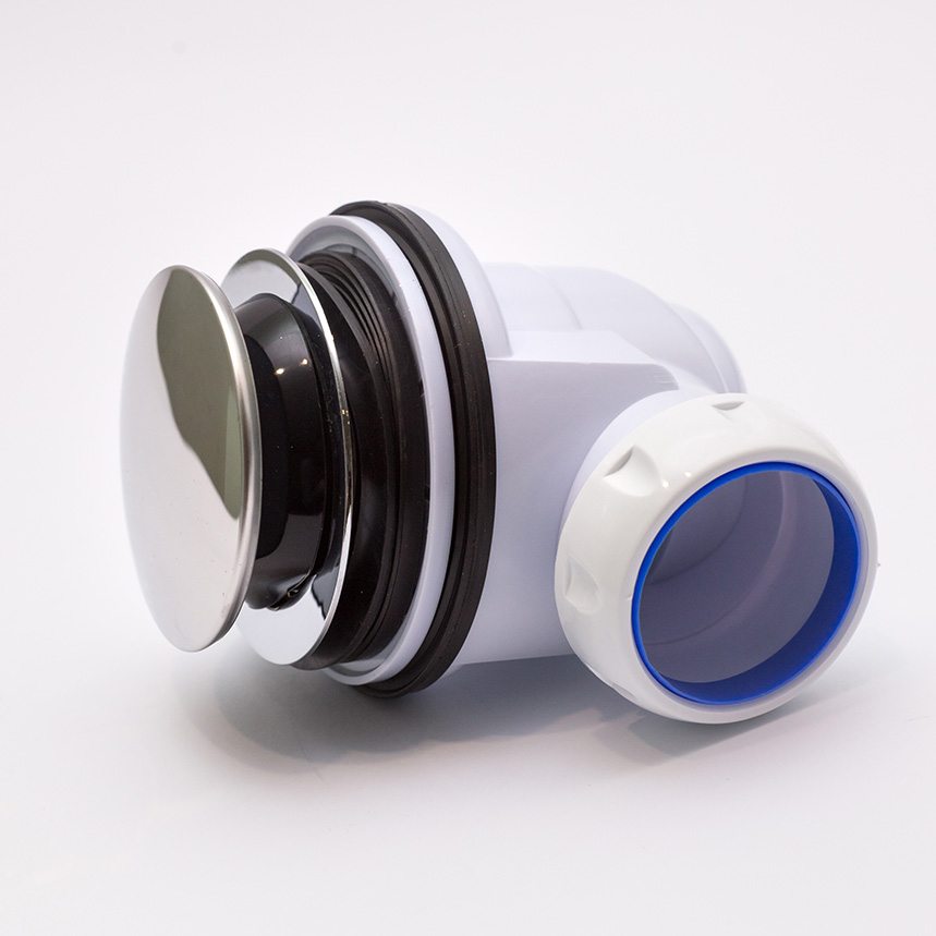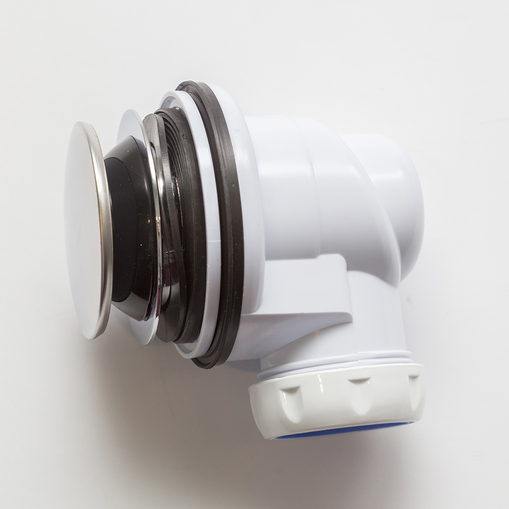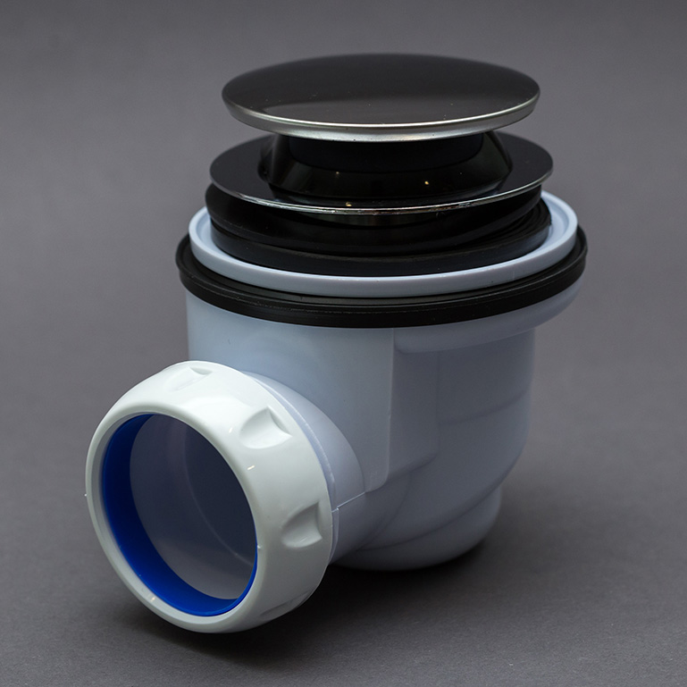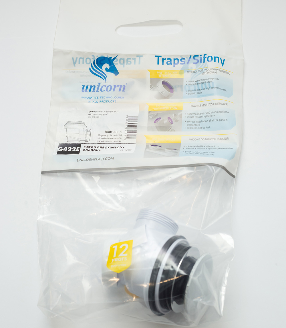 Сифон для душової кабіни Ø65 UNICORN з EASYOPEN без відводу G422E. Важлива особливість такої моделі полягає в тому, що гумові ущільнювачі контрастного синього кольору вже інтегровані в корпус сифона завдяки використанню багатокомпонентного лиття (технологія Multi-Injection). Це значно прискорює його монтаж і мінімізує ймовірність протікань. Сифон часто наражається на небезпеку з боку механічних пошкоджень під час експлуатації. Щоб максимально мінімізувати такі ризики, в моделі реалізовано практику Increased Strength (підвищена міцність), спрямовану на виготовлення ущільнювачів з термоеластопласту, що забезпечує додаткову щільність і міцність, а також використовується високоміцний пластик, з якого зроблений корпус. Схема та інструкція з монтажу зображена на упаковці, а чашка сифона поставляється в зібраному вигляді, що полегшує і пришвидшує монтаж сифона. Гарантія – 12 років.