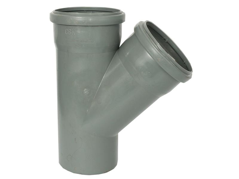Трійник діаметр 110/110 мм, кут 45 градусів СВК для внутрішньої каналізації. СВК - це торгова марка каналізаційних труб і фітингів класу економ. Продукція призначена для обладнання систем водовідведення з максимальною температурою стічної рідини 60 град. і короткочасної (до 1 хв.) 95 градусів, а також для вентиляції і для внутрішніх зливових стоків. Також продукція оснащена ущільнювачів гумками. ПВХ продукція виробляється з непластифікованого полівінілхлориду як монолітна (одношарова), так і тришарова. Вона не псується корозією, стійка до дії кислот, лугів і солей. Монтувати конструкцію на місці досить просто, а з'єднання виходить герметичним. При демонтажі або заміні усувається деталь також швидко. Відмінні техніко-економічні характеристики показали ПВХ каналізаційні труби і фітинги з діаметрами 110-200 мм, що зробило їх дуже популярним в приватному будівництві (дачі, невеликі будови). Характеристики: виготовлені з поліпропілену, призначені для монтажу каналізації, а саме для внутрішніх каналізаційних мереж. Виробник: "СВК", Україна.