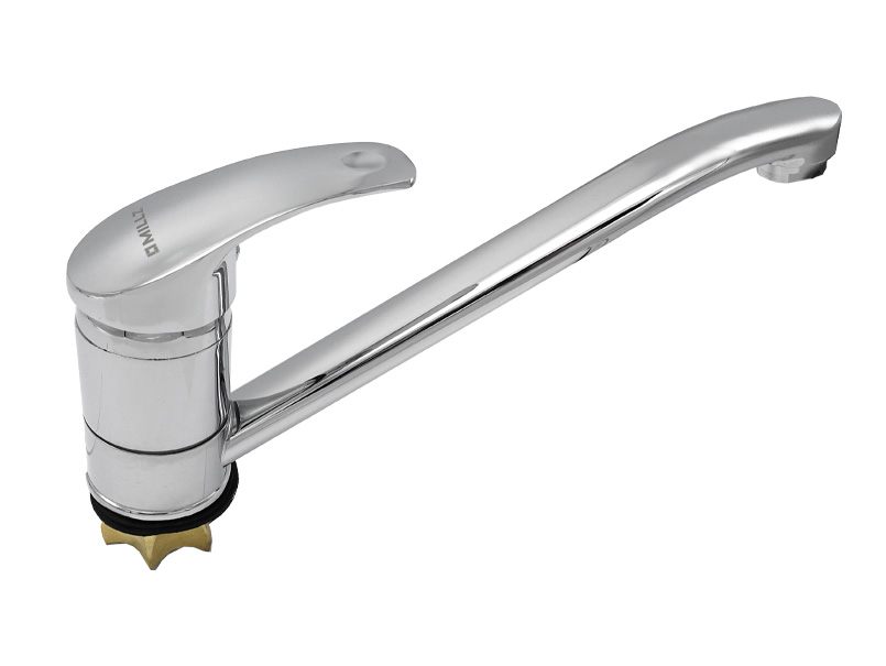 Картриджний змішувач для кухонної мийки із силуміну, довгий поворотний гусак. Стійке покриття хром. Країна-виробник: Китай. Кріплення (шланги і гайка) в комплекті. Гарантія на корпус змішувача 1 рік. Змішувач продається в міцній картонній коробці. Комплект поставки: змішувач, кріплення, інструкція, гарантійний талон. Задля уникнення подряпин корпус змішувача упаковано в зелений тканинний мішечок. Перевірена модель, вивірений дизайн роблять цей змішувач фаворитом покупців. довжина, см: 31,5 ширина, см: 15 висота, см: 6